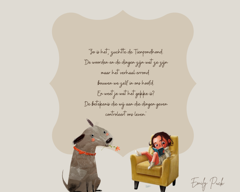 'Dat zeg je tegen mij? Net als ik ben jij uniek en dat moet ook zo zijn. Hoe verwarrend zou de wereld zijn met twee horizonnen? Je bent niet alleen. Ik ben er en de vogels en de bloemen en de bomen en de lucht en de aarde... We zijn er allemaal voor jou. Maar alles kan er alleen maar zijn als er een horizon is.'